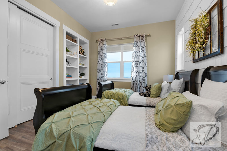 Muted tones of blue, green and gray combined with cream and white, bring a refreshing and relaxing ambience to this home while black accents and lighting add a touch of sophistication. Loads of custom woodwork, including crisp white wainscot, bead board and beamed ceilings grace the interior, while the creative use of unexpected materials bring uniqueness and interest to the design. And as always, for the little ones there are surprises and fun spaces to explore! We invite you to spend some time exploring this beautifully executed home, proudly presented by Hi-Point Home Builders and Dancing Horse Interiors.